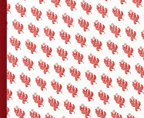 Stylized leaves in soft red march across this print giving it giving it (and you) a beautiful, yet organized look. Ruby trim. Coordinates with Rally Red items too.