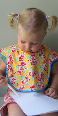 How can we leave out baby? Now everybody can match! The Babee bib is 100% cotton to match Mom, grandma or big sister. In the past, women had their “special occasion” apron for entertaining. Now baby, (who is, of course, the most entertaining of them all) has one too.