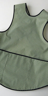 Charlie’s no fuss, no muss style is perfect for the budding chef or artist that just can’t sit still long enough to deal with buttons or ties. A built-in front pocket divided into three provides a place for wooden spoons, marbles or hands. And whether it’s from flour and eggs or glitter and glue Charlie will protect play clothes.