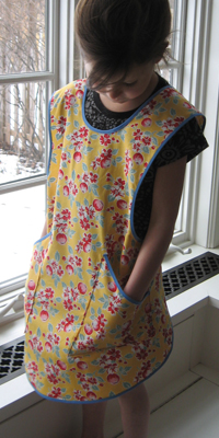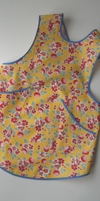 Katy's no fuss, no muss style is perfect for the budding chef or artist that just can't sit still long enough to deal with buttons or ties.